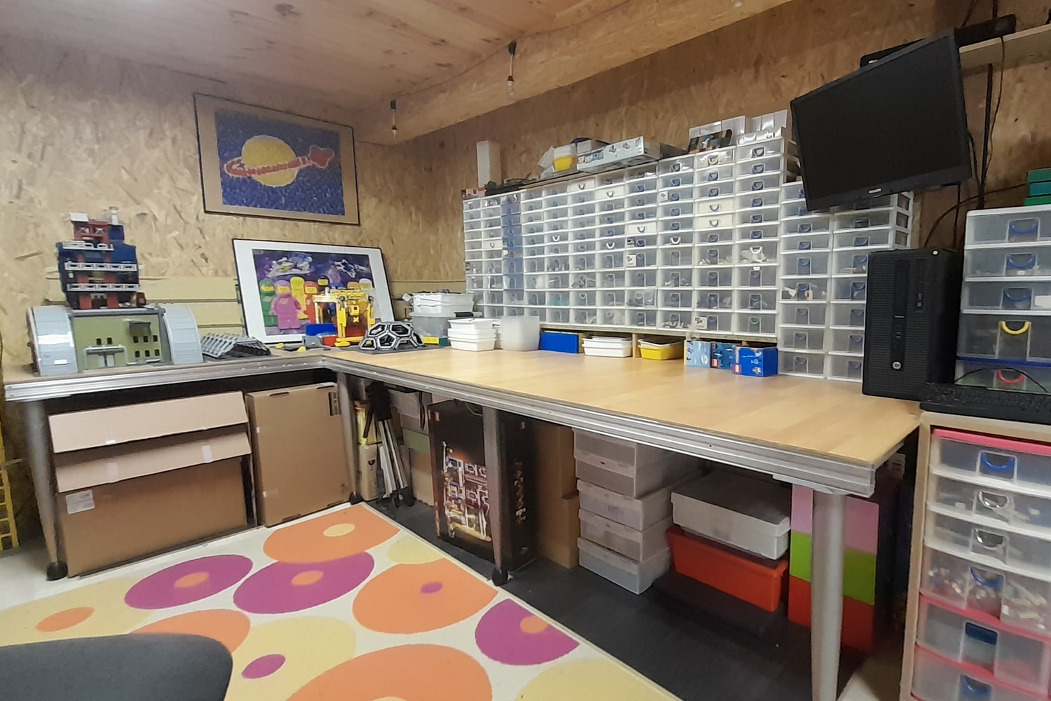 J’ai plusieurs idées de dioramas à faire, des sets à exposer, une petite ville à construire avec les modulars… et bien sûr du vrac à ranger. Je sais d’avance que cette room n’est pas assez grande pour tout ça.