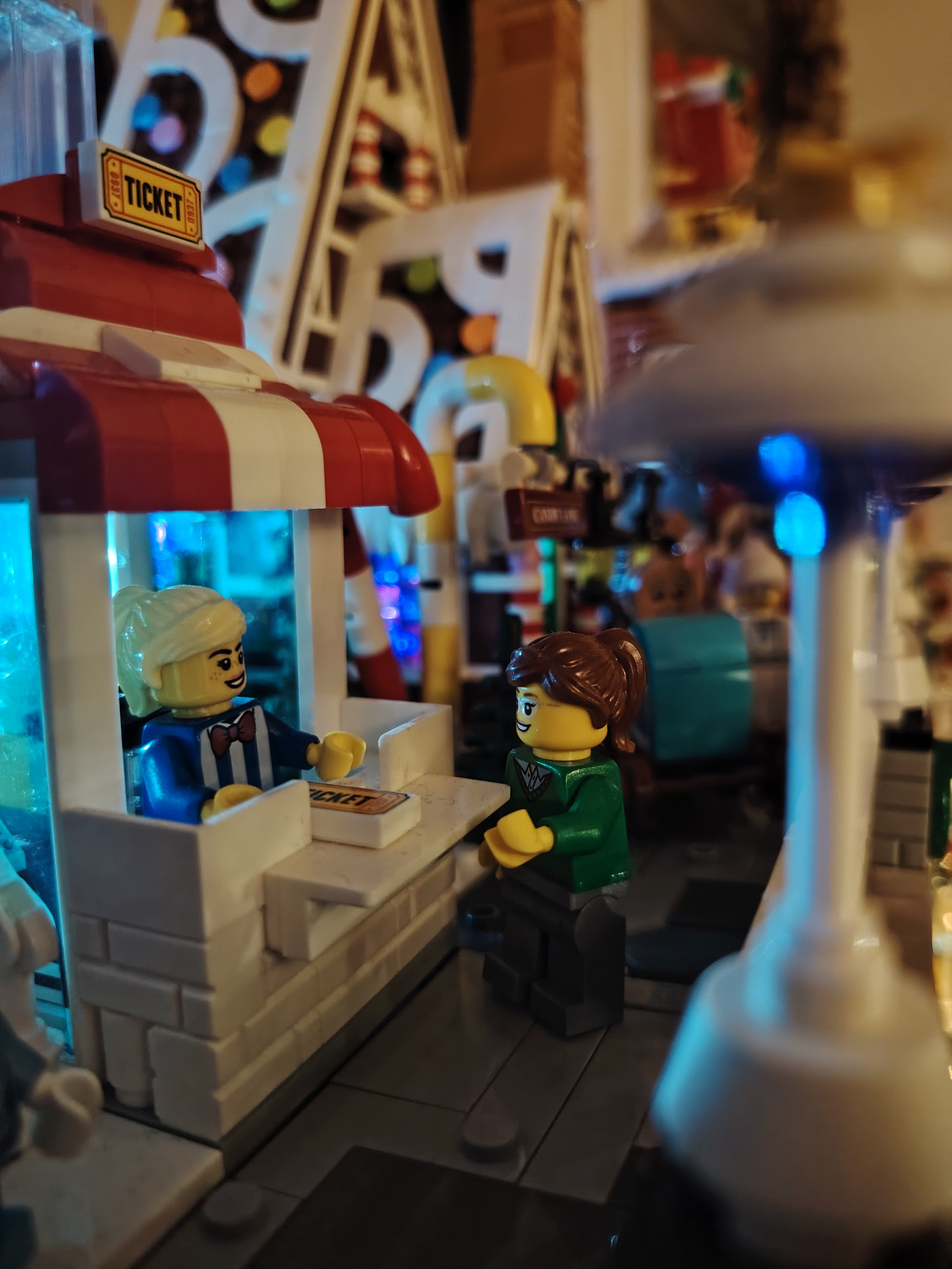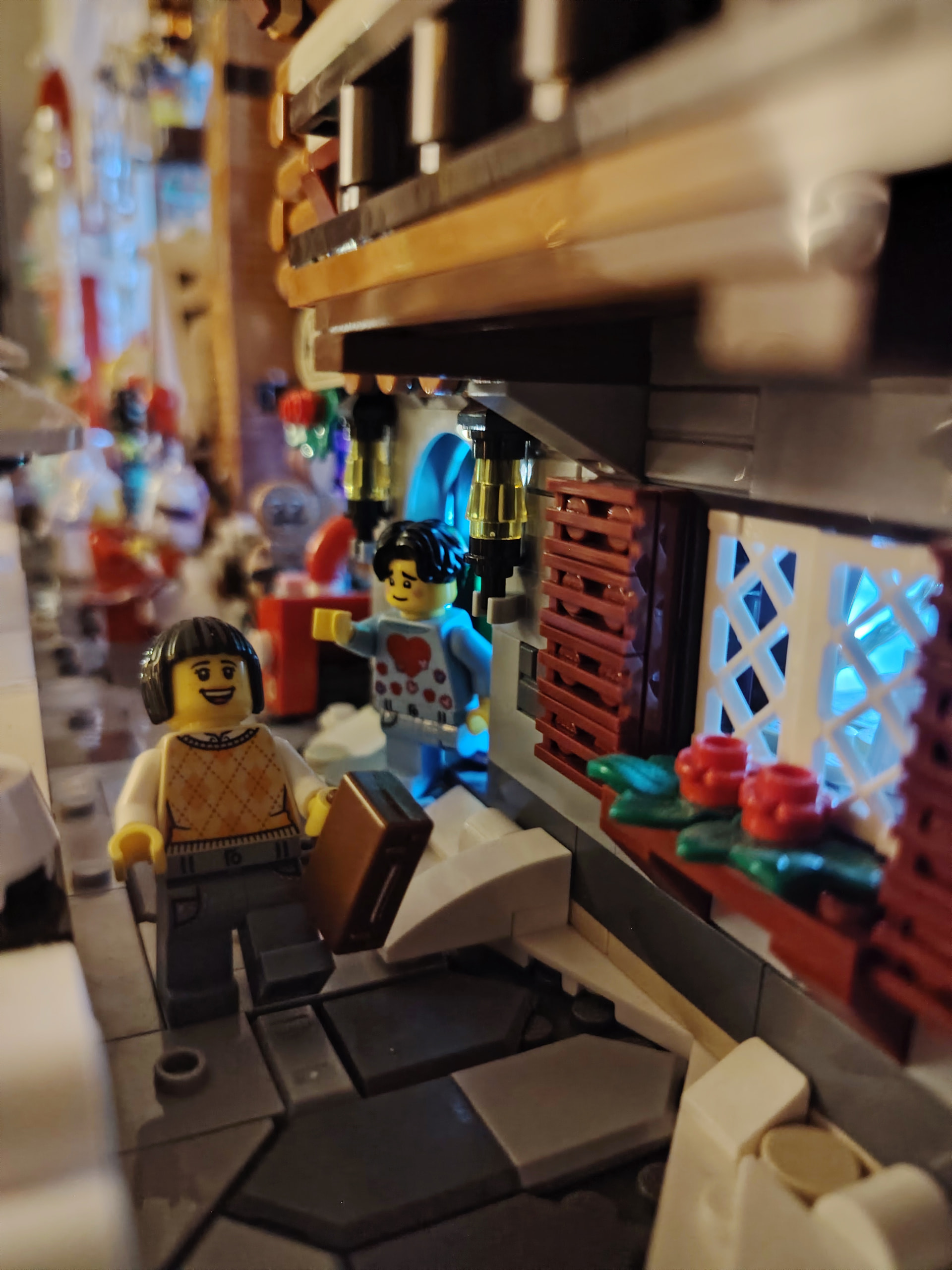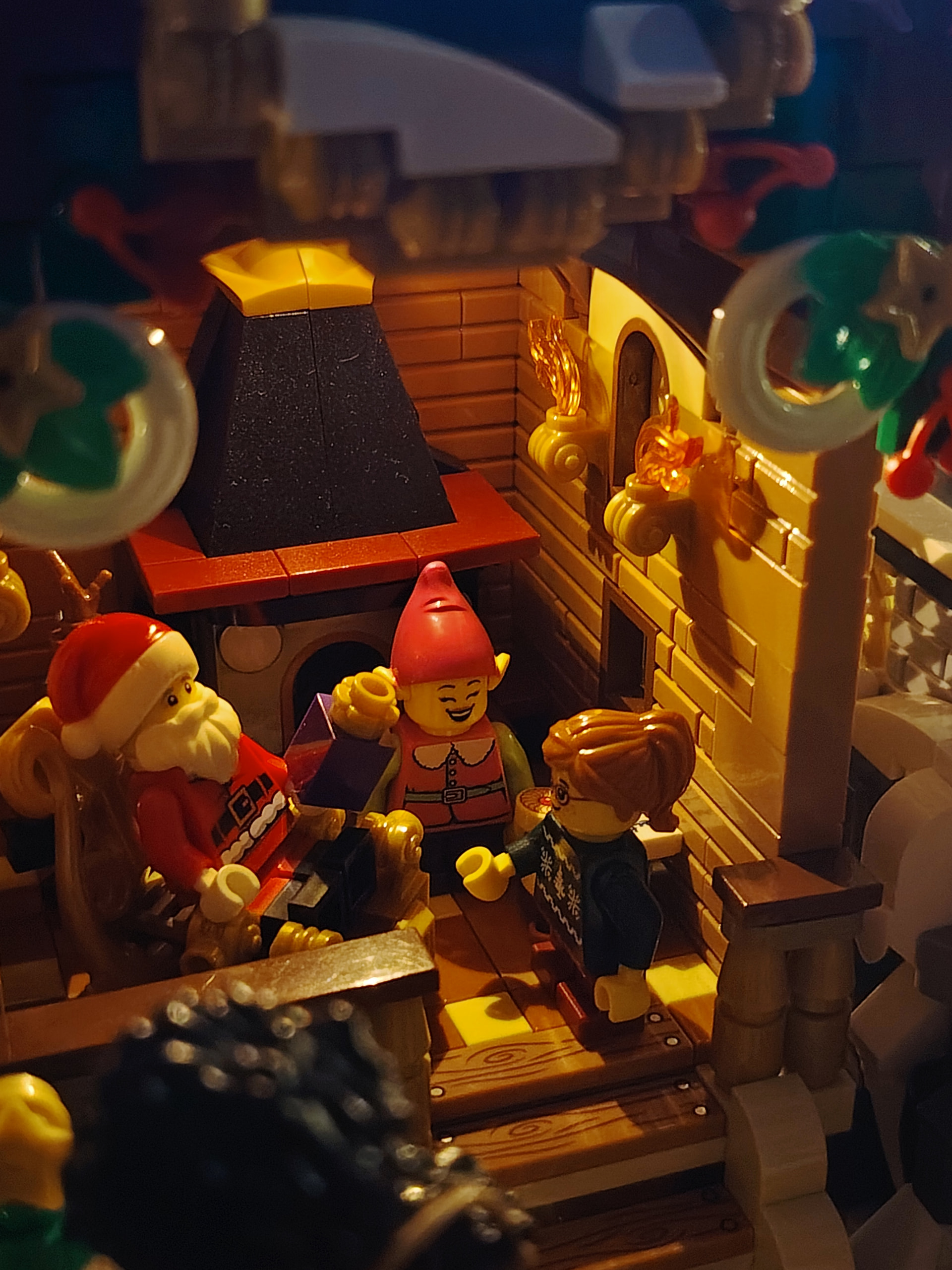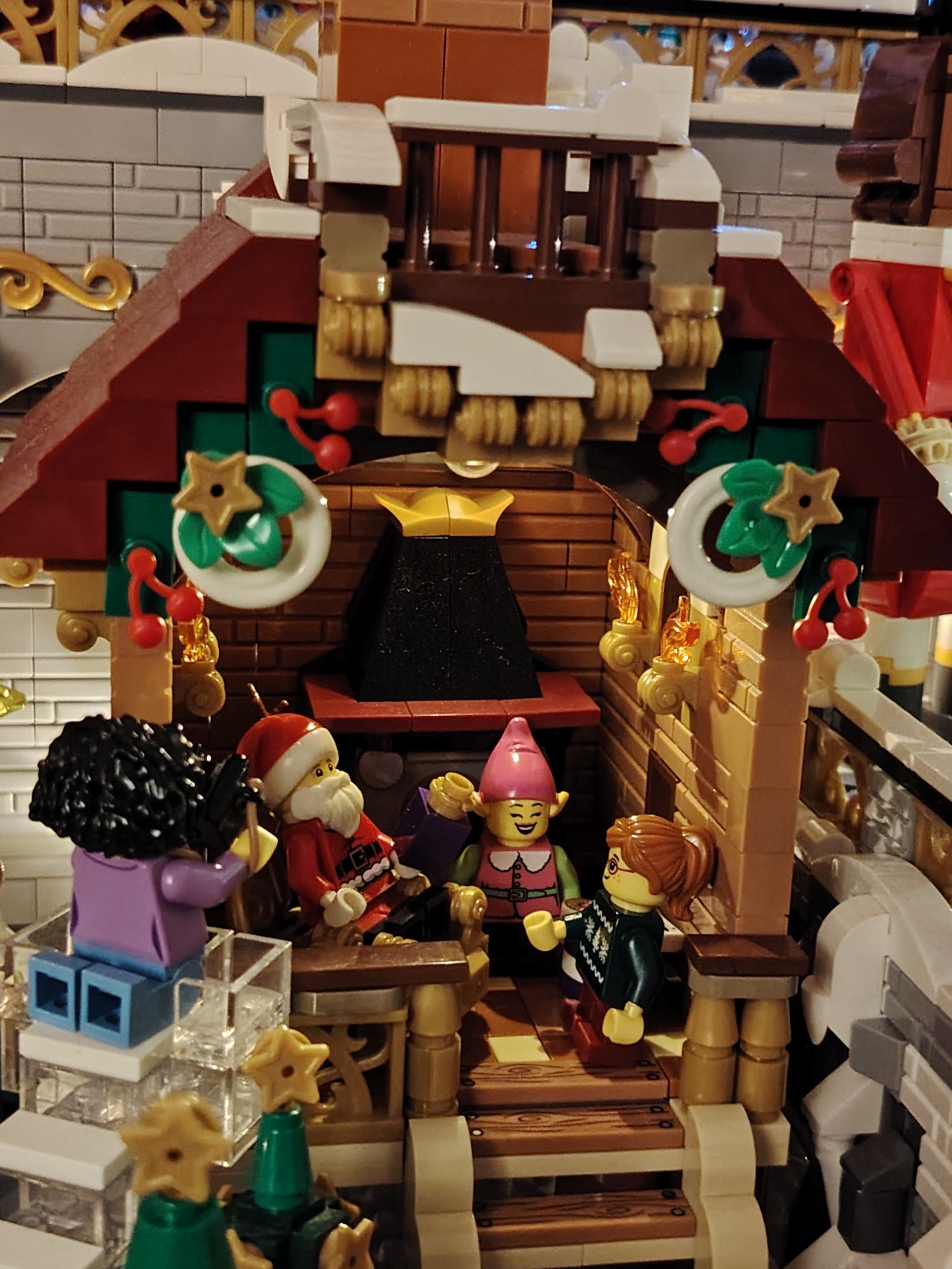 Il est temps à présent de procéder au déménagement sur son emplacement définitif au rez-de-chaussée. En apprenant de mes erreurs du passé, j’en profite pour ajouter les 2 guirlandes avant de placer tous les bâtiments ![]()