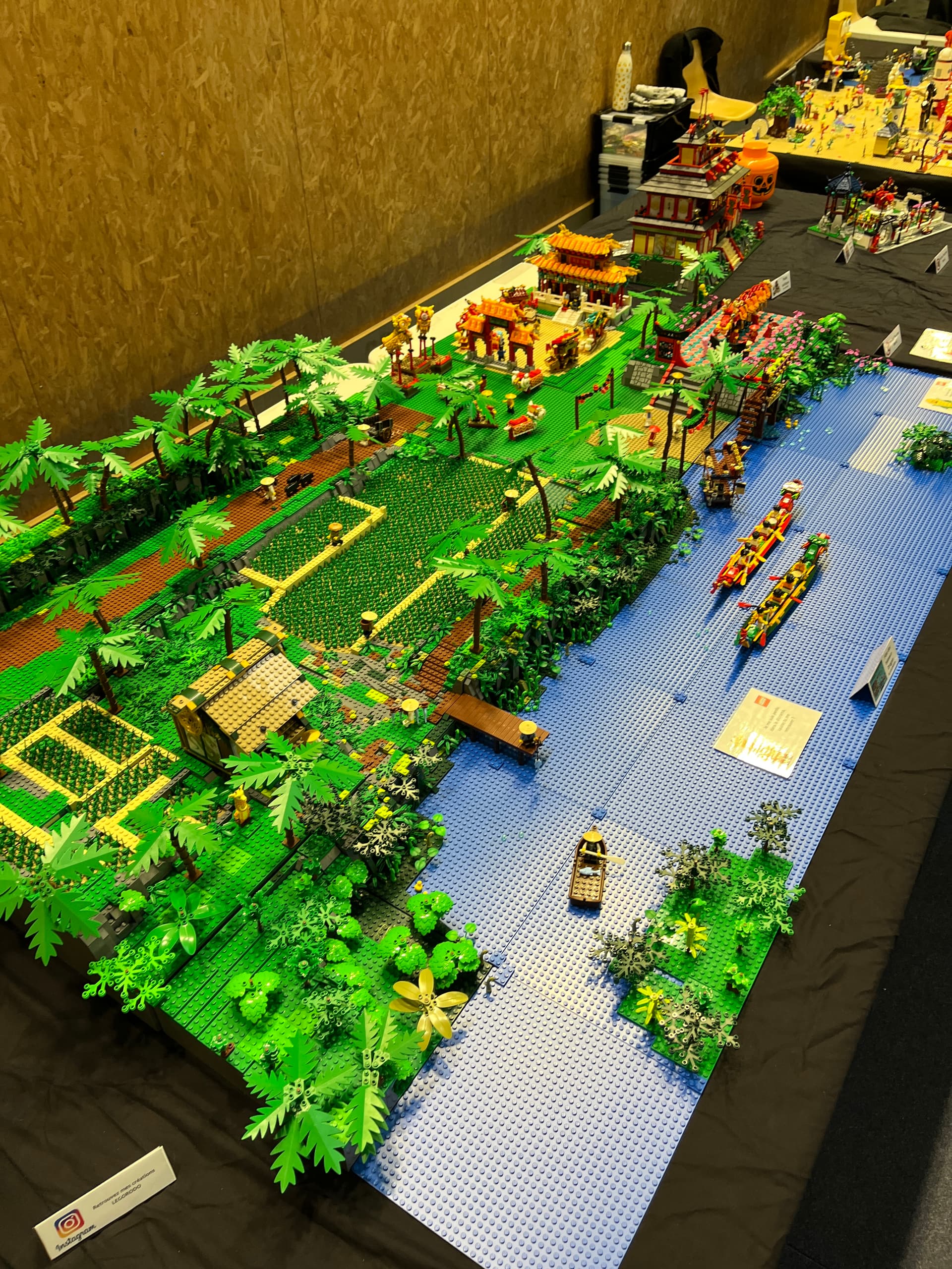 Pour ma part, la thématique retenu était sur l’Asie : ses temples et pagodes et sur les paysages de rizières. Des sets NINJAGO retravaillés ont permis aux visiteurs de s’évader loin du Loiret !!