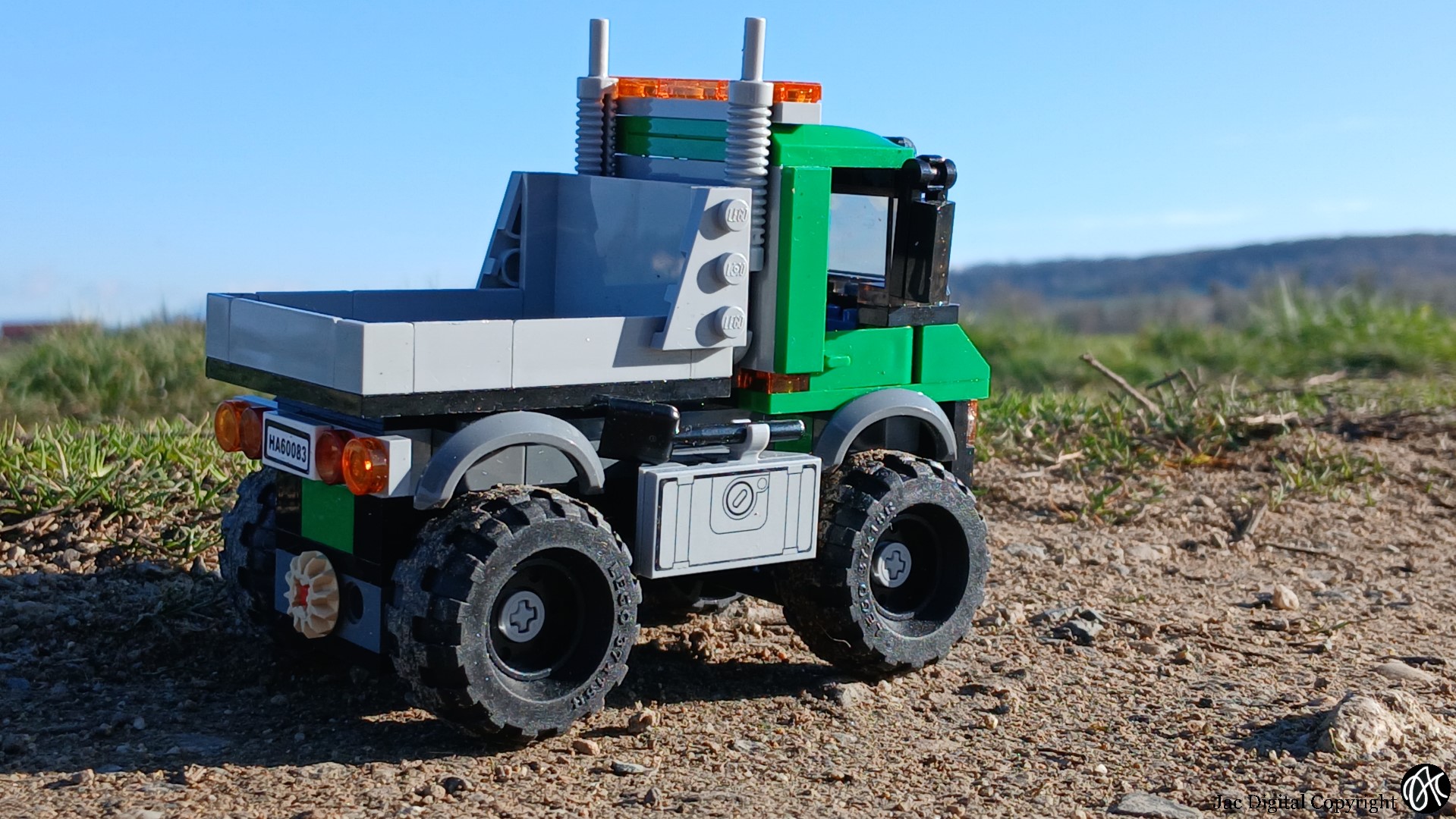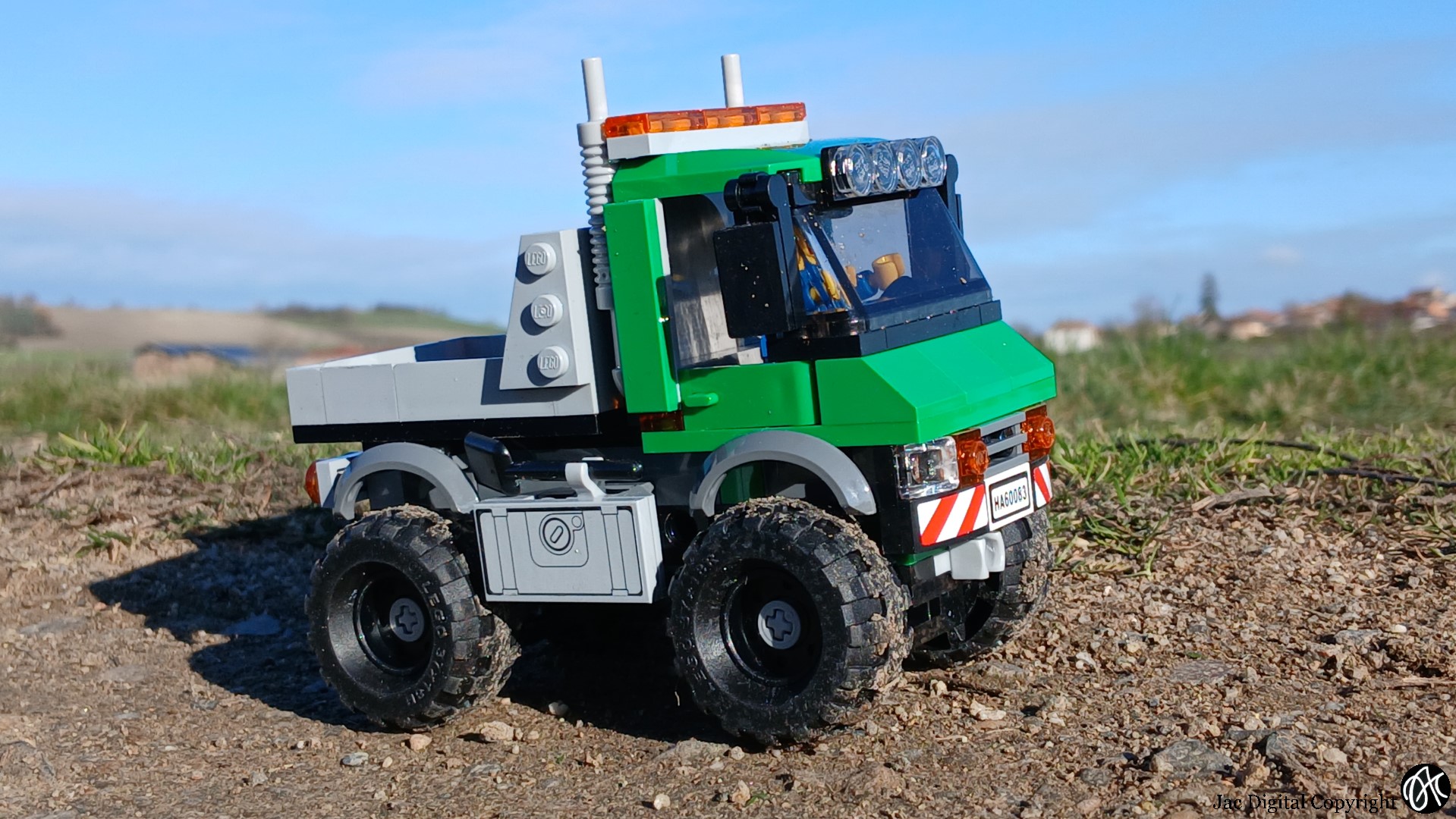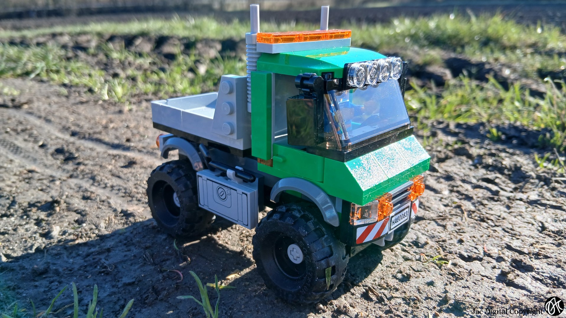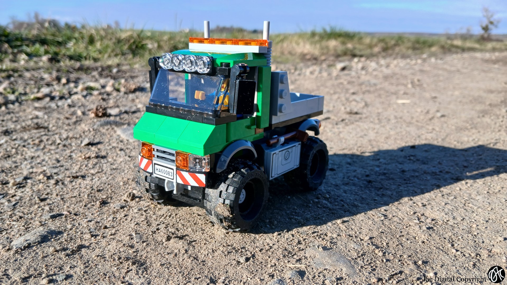 Je me suis enfin décidé à construire le chasse neige 60083. Une jolie copie d’un Unimog prêt à travailler en plein hiver, avec une sableuse à l’arrière. Oui, mais voilà, ce qui m’intéresse c’est le tout terrain sans la neige. Enfin, quand je l’ai monté. Donc première modification, enlever la lame. Ensuite, changer la benne et j’ai du refaire les axes de roues, car ça ne fonctionnait pas comme il faut à mon sens. La prise de force est beaucoup plus souple. Voilà ce jolie camion Mercedes TT prêt pour une petite balade. Malgré le froid à ce moment là, on est tous sortie avec l’appareil photo…
