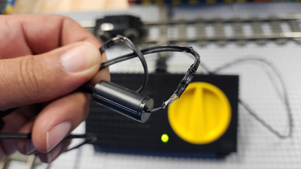 J’ai quelques rails 9V Lego, mais les vieux câbles sont complètement abîmés. Du coup, j’ai voulu tenter de les réparer. Avec le temps, le plastique se désagrège, les conducteurs se retrouvent à nu et… bonjour les courts-circuits.