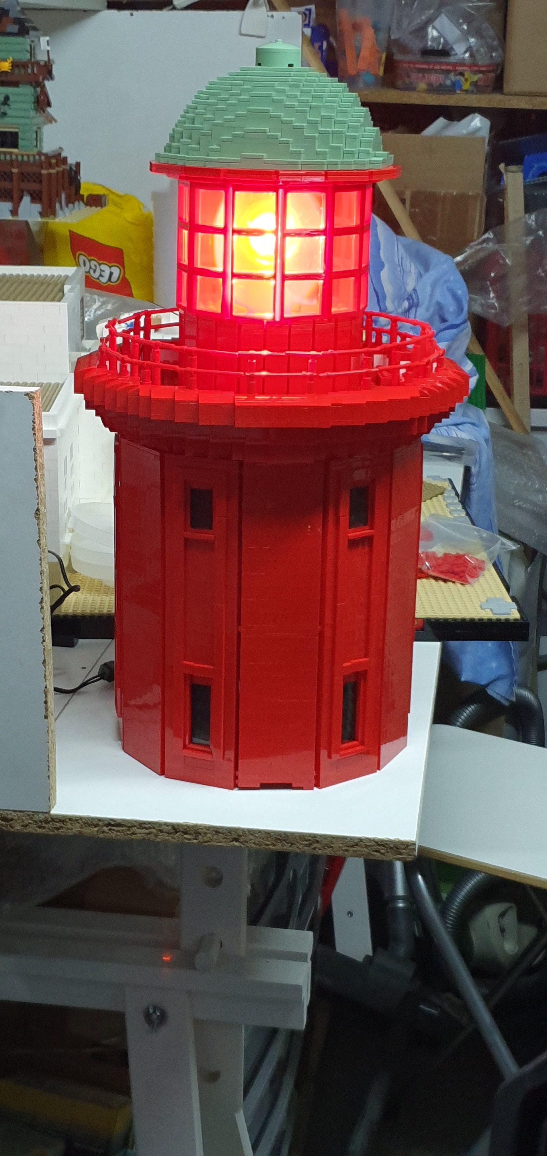 Le phare n’est pas à l’échelle minifig, du coup je trouve que tu triche. Parce que forcément, si l’échelle est plus grosse, le phare sera plus haut, de par le fait
